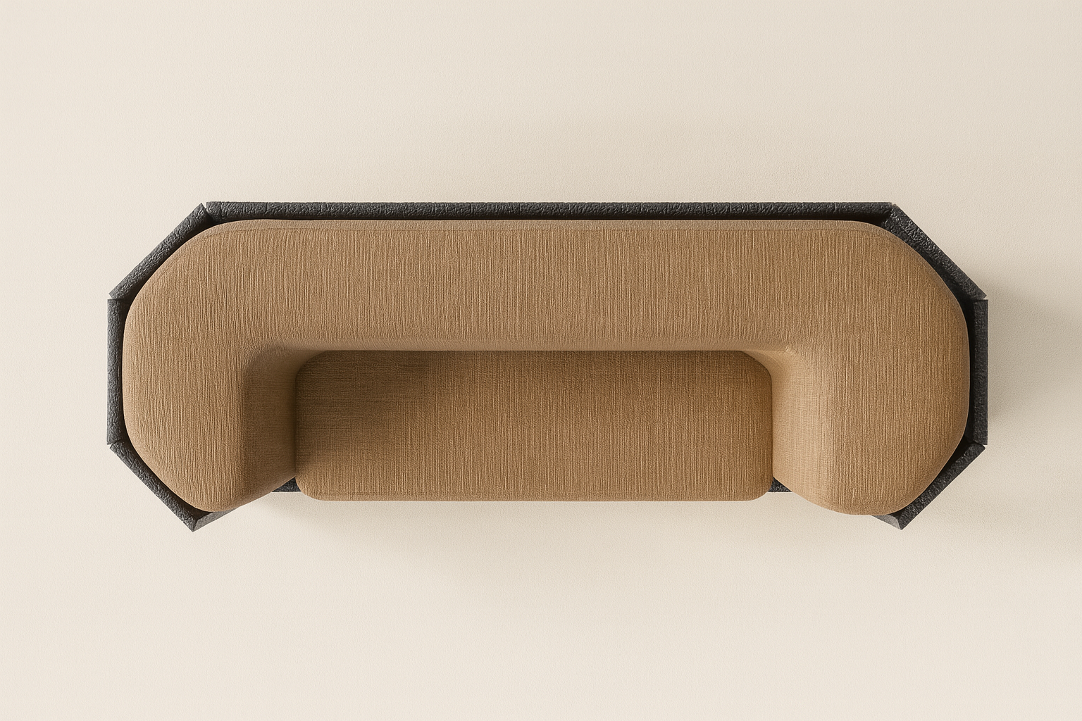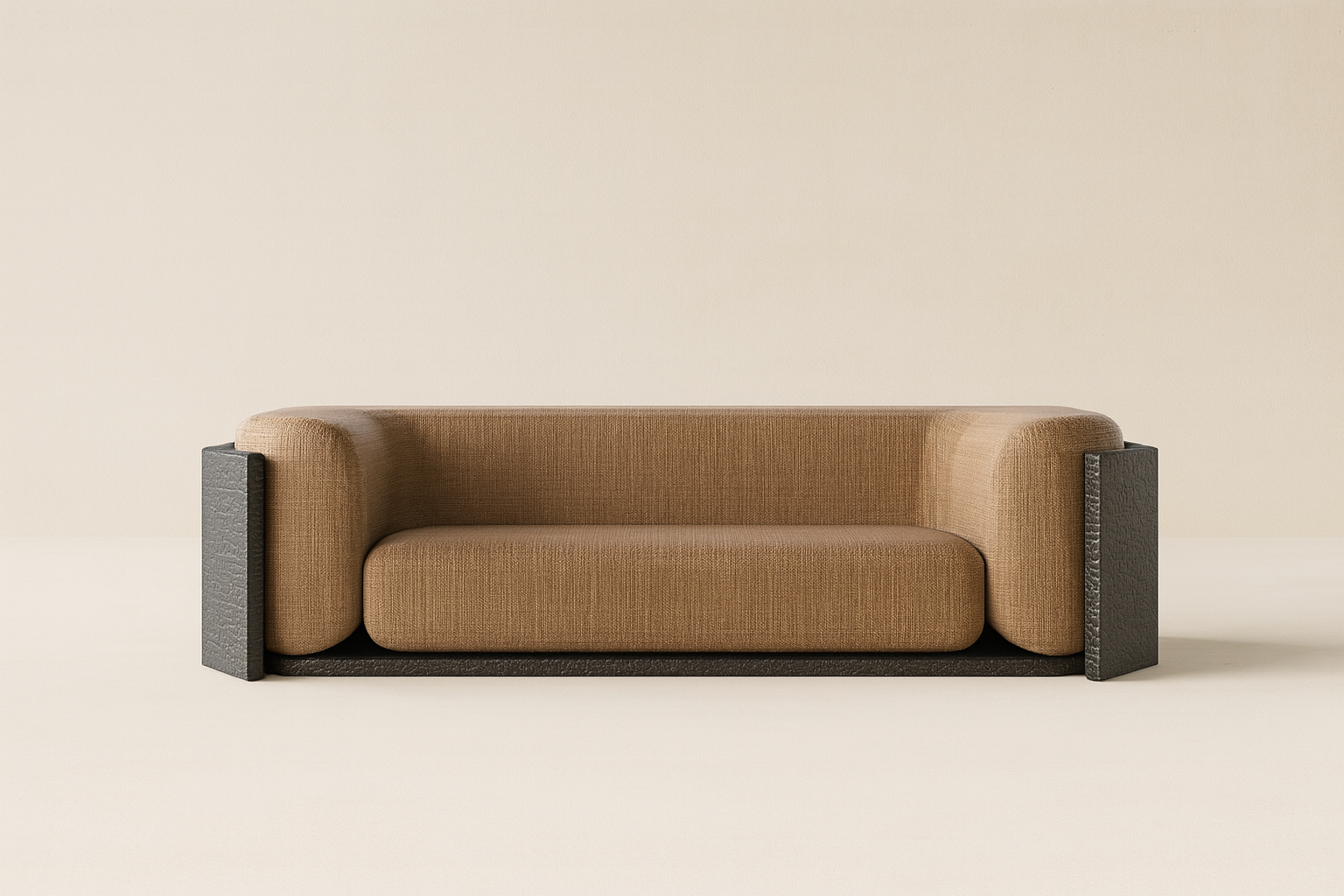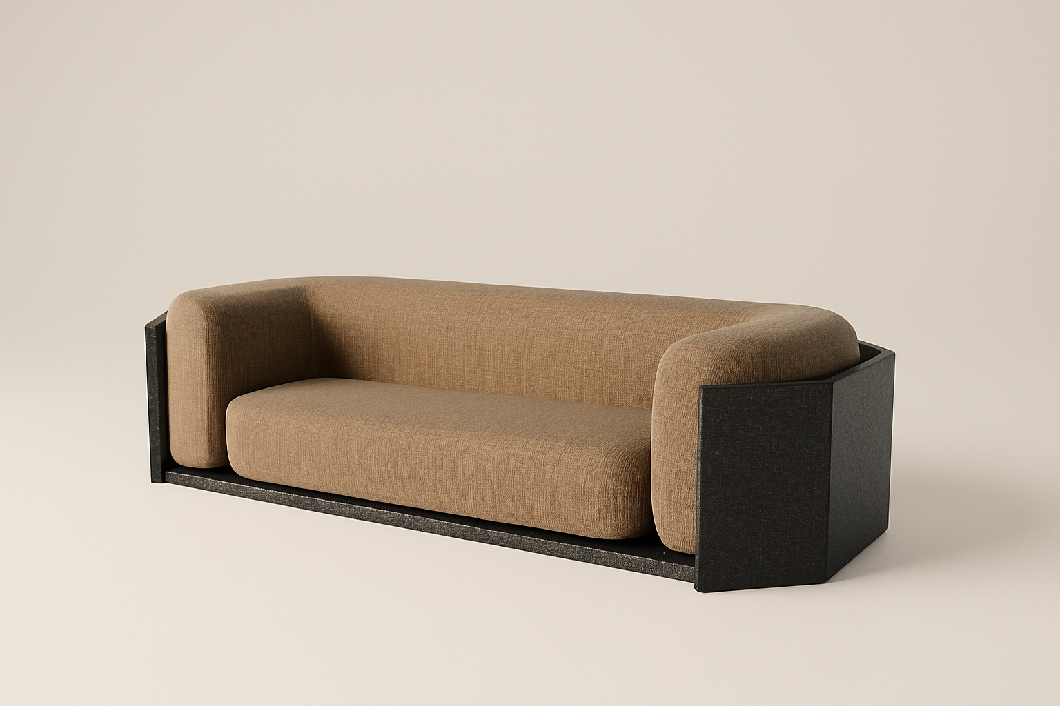 Charred black oak and Upholstery.